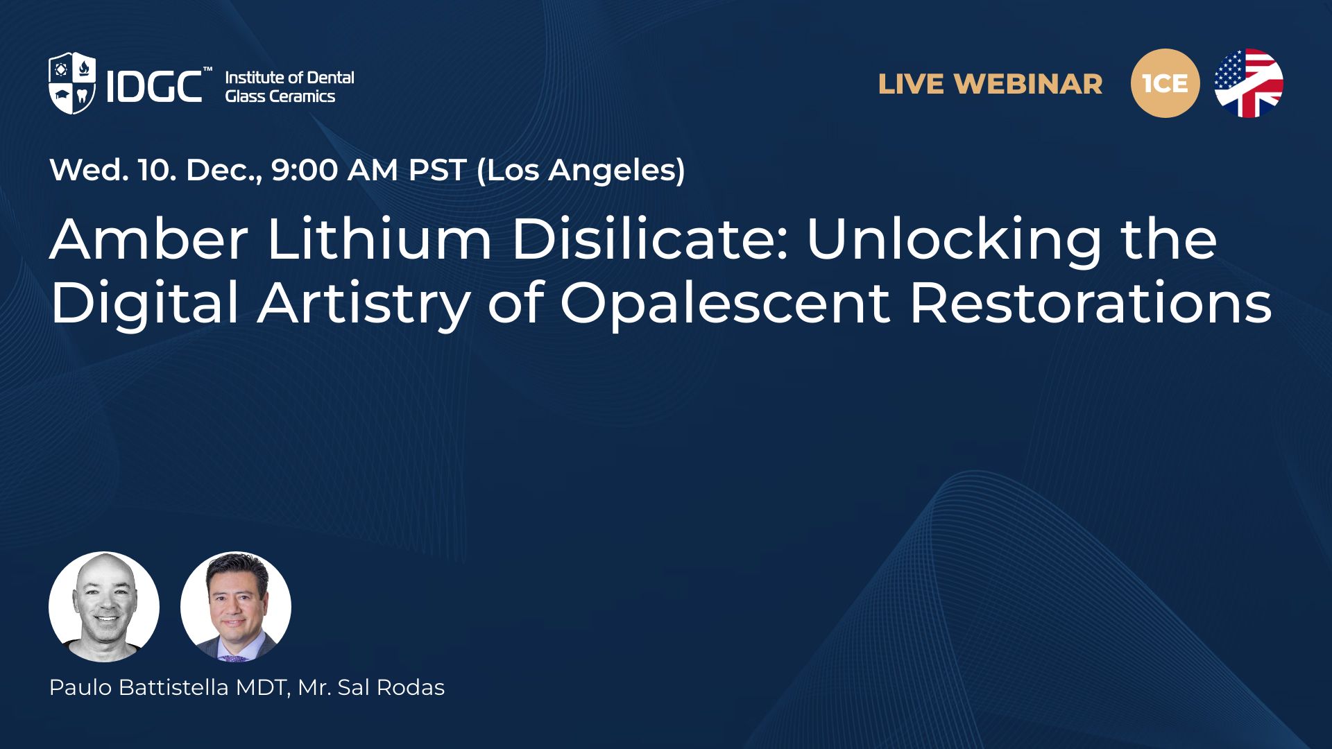 In this webinar, master ceramist Paulo Battistella and Sal Rodas, MBA, will introduce Amber, an advanced lithium disilicate ceramic. Celebrated for its strength and optical properties like translucency and opalescence, Amber enables technicians to create esthetic and durable restorations.
